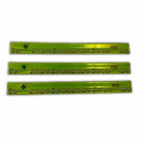 Top-selling reflective accessories with full-surface printing for corporate clients. Available in 6 sizes from 250x30 mm to 410x50 mm.